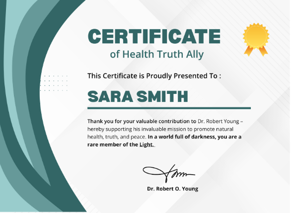 (Optional: As Dr. Young’s way of saying “Thank You,” every supporter who donates will become an official Health Truth Ally, and receive a limited edition digital certificate. Print it out and display it proudly to inspire others to join the cause.)
