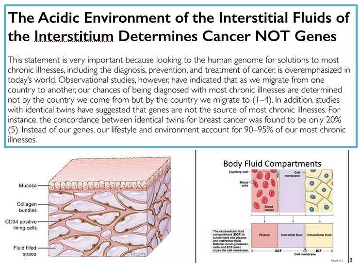 Instead, all health and disease is determined by our own actions, thoughts, and attitudes–our lack of nutrition, exercise, rest and restoration, relaxation and so on, and the toxic stresses on us–chemical, radiation/EMF, environmental, physical, each producing specific bio-effects, which gives rise, Dr. Young says, to unhealthy acidic environments inside us, plunging the pH of our interstitial fluids (fluid between cells), vascular fluids (fluid inside blood vessels), and cellular fluids (fluid inside cells) to dangerous and toxified levels much lower than the optimal baseline levels that they and we need to be in good health and thrive.