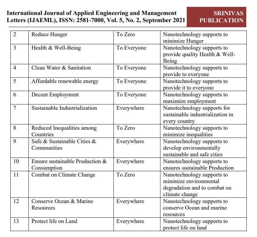 (3) Green nanotechnology supports to provide quality Health & Well-Beings to everyone in the entire world by means of finding simple & effective drugs for every disease.