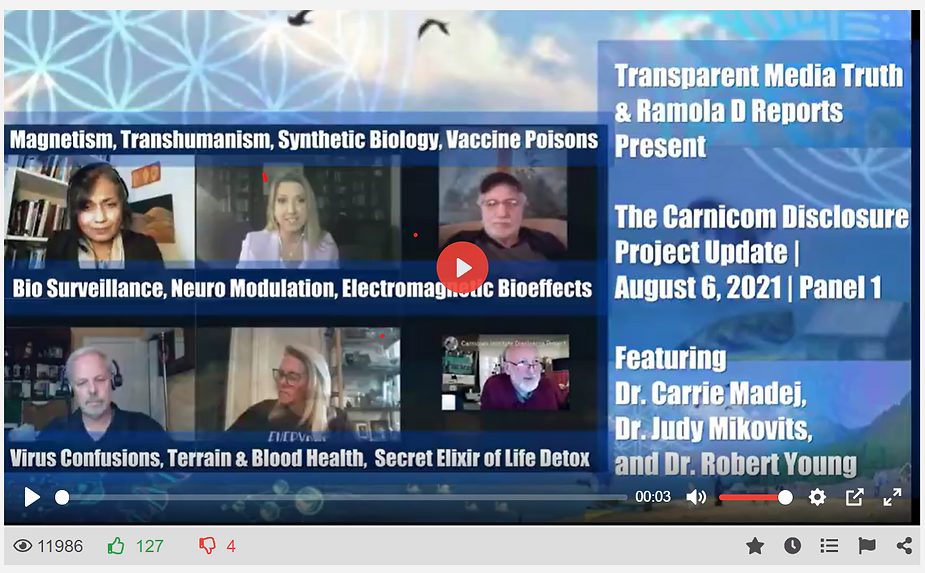 For the Carnicom Disclosure Project on Magnetism, Trans-humanism, Synthetic Biology, Vaccine Poisons, Bio Surveillance, Neuromodulation, Electromagnetic Bio-Human Effects, Virus Confusions, Terrain and Blood Health and the Secret Elixir of Life –