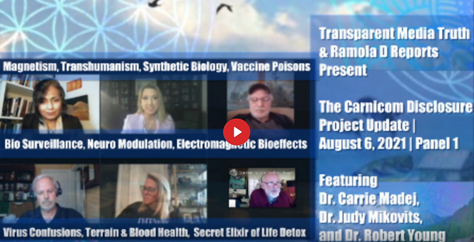 [4] Research and findings from The Carnicom Disclosure Project on Magnetism, Trans-humanism, Synthetic Biology, Vaccine Poisons, Bio Surveillance, Neuromodulation, Electromagnetic Bio-Effects, Virus Confusions, Terrain and Blood Health and the Secret Elixir of Life, ALL revealed in the following interview of Dr. Carrie Madej, Dr. Judy Mikovits and Dr. Robert O. Young!