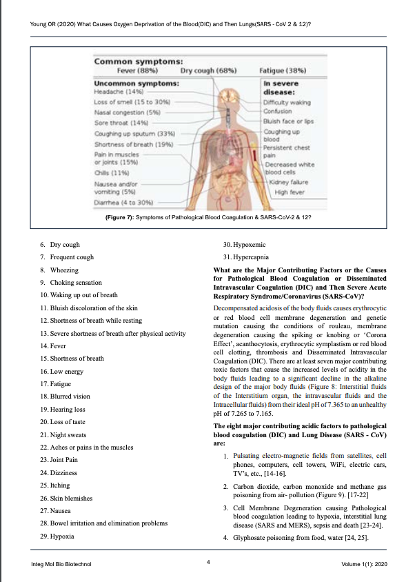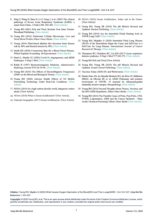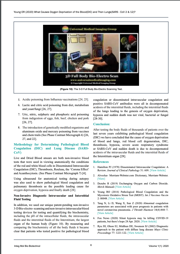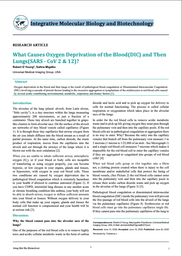 [1] Young, RO, Migalko, G, “What Causes Oxygen Deprivation of the Blood Leading to Pathological Blood Coagulation (DIC) and Then Lungs (SARS – CoV 2 and NOW Called SARS – CoV – 19)”. June 16th, 2020.
