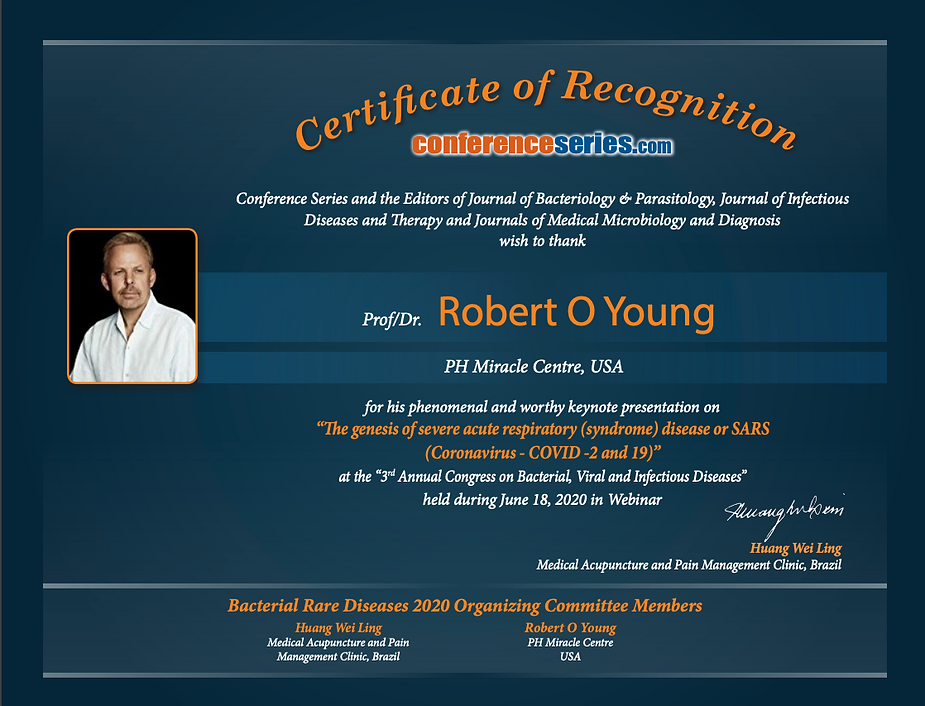 www.drrobertyoung.com– CV www.drrobertyoung.com/blog – scientific blog https://phoreveryoung.wordpress.com/ – 3000 articles https://www.bitchute.com/search/?query=dr%20robert%20o%20young&kind=video – 120 Scientific Interviews and Lectures https://www.youtube.com/c/RobertYoung555/playlists – 1000’s of videos to watch https://rumble.com/search/video?q=drrobertyoung – 50 recent interviews recorded on Zoom www.universalmedicalimaging.com – non-invasive medical diagnostics www.phmiracleproducts.com – alkalizing products www.phmriacleretreat.com – treatment centers www.thriveon.com– World premier documentary https://youtu.be/gC8p7P22cc – Mammograms – The War on Womens Breasts starring Dr. Galina Migalko https://www.amazon.com/kindle-dbs/entity/author/B001ILKCSU?_encoding=UTF8&node=283155&offset=0&pageSize=12&searchAlias=stripbooks&sort=author-sidecar-rank&page=1&langFilter=default#formatSelectorHeader – Books by Dr. Robert O Young https://www.instagram.com/drrobertyoung/– instagram https://www.linkedin.com/in/robert-young-bb650311b/ – linkedin https://twitter.com/settings/profile – twitter https://www.facebook.com/profile.php?id=100007707879435 – Facebook Setting up an appointment for a consultation – https://staging.drrobertyoung.com/services-page Freedom of Information responses from 81 institutions (including Public Health Agency of Canada, US CDC, UK Depart of Health and Social Care, Indian Council of Medical Research) in 20 countries/jurisdictions show that health/science institutions have NO RECORD of “SARS-COV-2” isolation/purification from ANY patient sample, by ANYONE, ANYWHERE, EVER! – HERE IS THE LINK: https://www.fluoridefreepeel.ca/fois-reveal-that-health-science-institutions-around-the-world-have-no-record-of-sars-cov-2-isolation-purification/