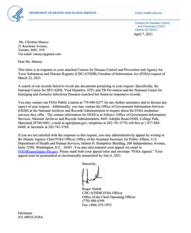 The CDC Chief FOIA, Mr. Roger Andoh provided straightforward responses to each one of our requests, admitting in writing that they have NO RECORD of ANY KIND, for the following so-called phantom “viruses”, including CoV – 2 -19, HIV, HPV, XMRV, HTMV-1, HTMV-111/LV, Measles, Influenza, MERS, EBOLA, ZIKA, POLIO,: