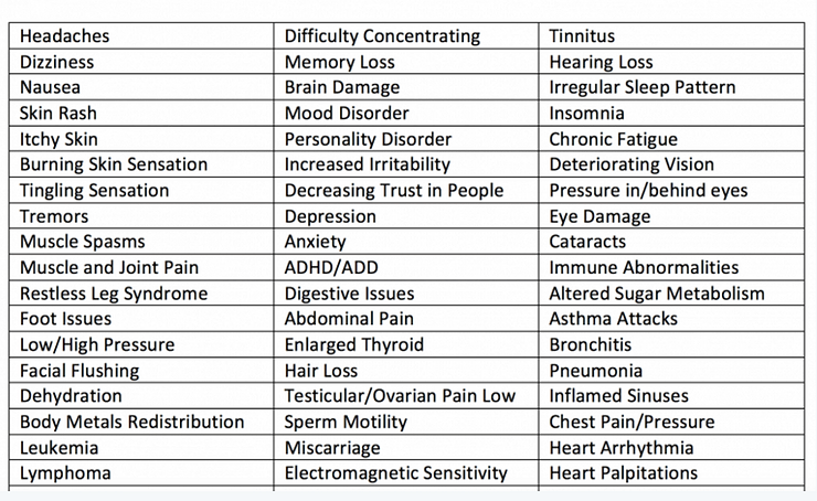 (3) Be aware that the symptoms of 5G pulsating electro-magnetic field (EMF) poisoning are listed below and should NOT be confused with a so-called phantom virus infection called Coronavirus, which represents many so-called viruses, including COVID-19. The infection is NOT viral (the viral theory is a smoke screen to coverup the true cause of your sickness or disease) it is a targeted electro/magnetic pulsating frequency called 5G. The frequencies that 5G uses is 75-100GHz, and will interact with the geometrical structure of your skin, sweat ducts and the interstitial fluids of the Interstitium that surround every cell in the human body, acting upon them like a transmission reaching an antenna, and therefore fundamentally affecting your health and your mood making you sick, tired and depressed!