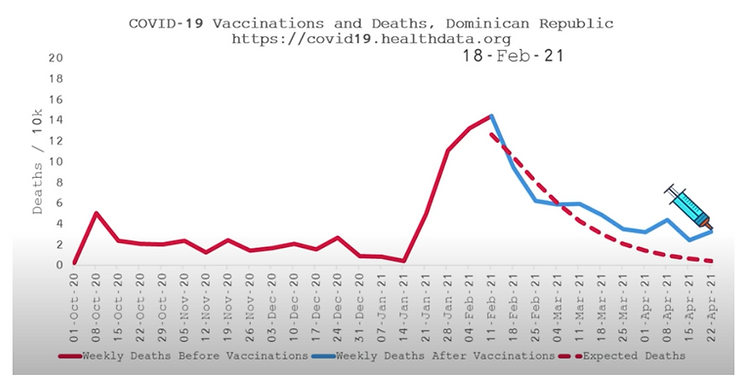 The red line in each graph below shows the trending toward herd immunity. The blue line indicates the extraordinary CoV – 19 death spikes which occurred shortly after each nation rolled out their vaccine programs.