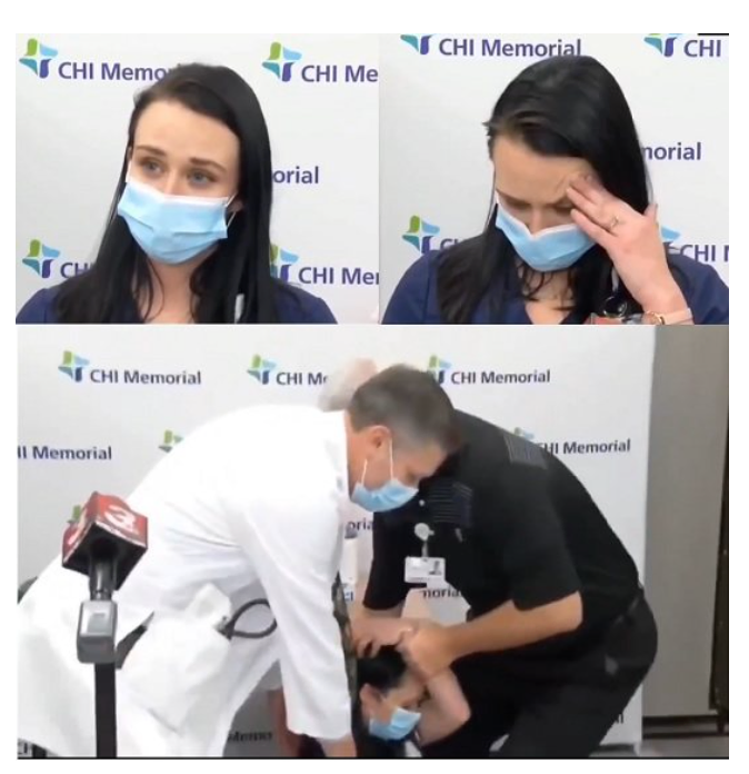 Tennessee Nurse Manager Passes Out on Camera Immediately After Receiving the Pfizer Vaccine. No one has seen or heard of her since and is presumed dead.