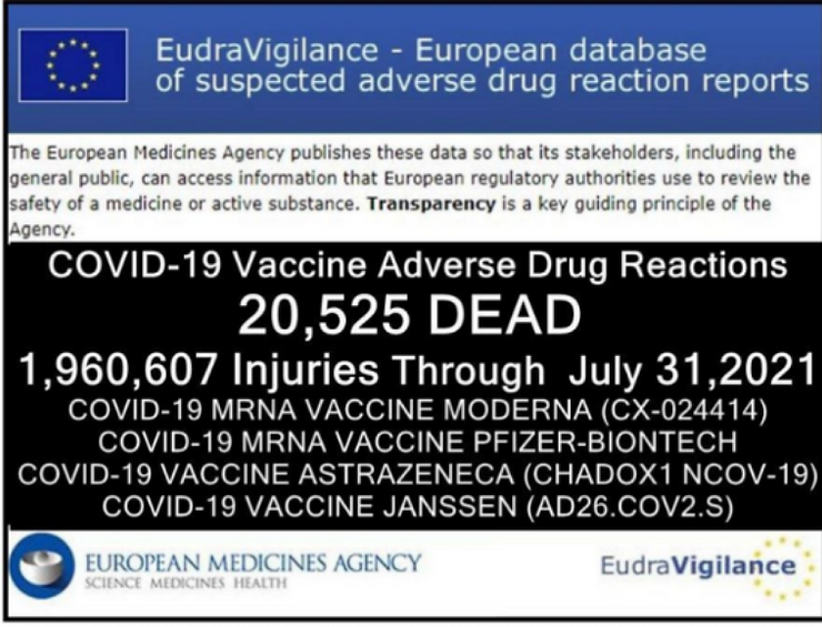 USA Reported Injuries 545,337 and Deaths at 12,366 and Europeans Reported 1,960,607 Injuries and 20,525 Deaths through July 30, 2021)