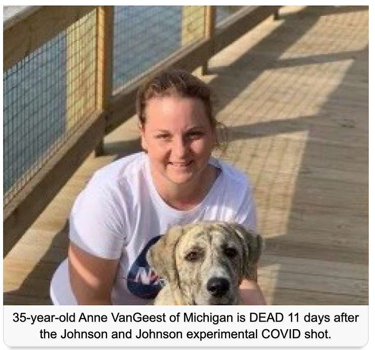 35-year-old Anne VanGeest of Michigan is DEAD 11 days after the Johnson and Johnson experimental COVID shot.