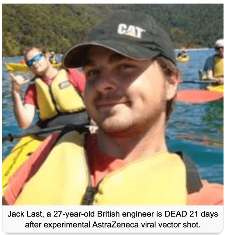 Jack Last, a 27-year-old British engineer is DEAD 21 days after experimental AstraZeneca viral vector shot.