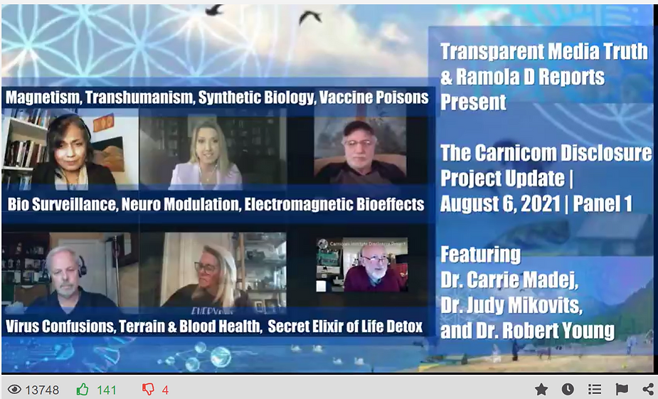 Research for the Carnicom Disclosure Project on Magnetism, Trans-humanism, Synthetic Biology, Vaccine Poisons, Bio Surveillance, Neuromodulation, Electromagnetic Bio-Human Effects, Virus Confusions, Terrain and Blood Health and the Secret Elixir of Life –