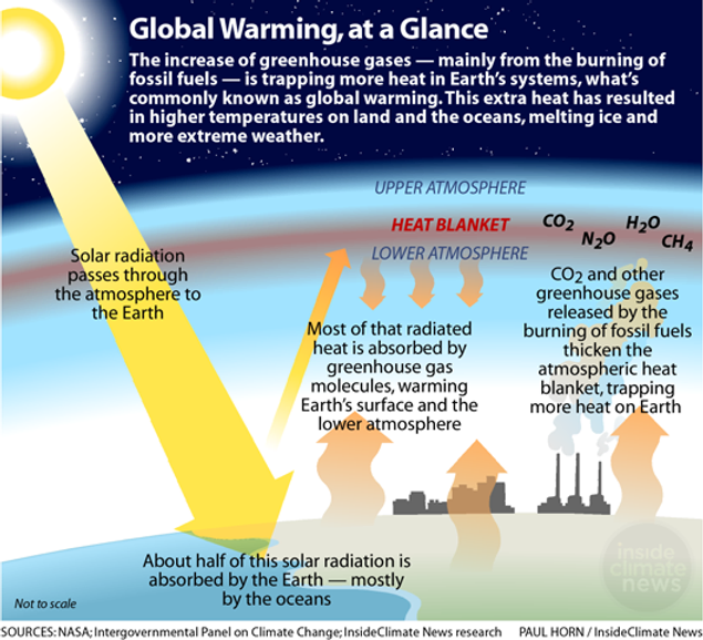 Some of the extra CO2 emitted enters the oceans, acidifying waters globally.