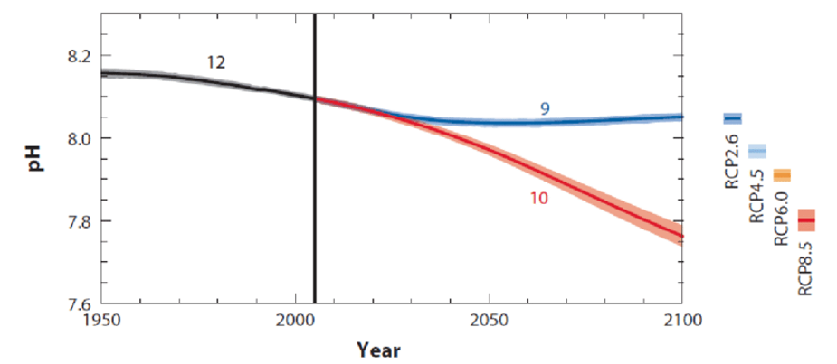 [4] NOAA. (2010). Ocean Acidification, Today and in the Future. (accessed on August 6, 2019)