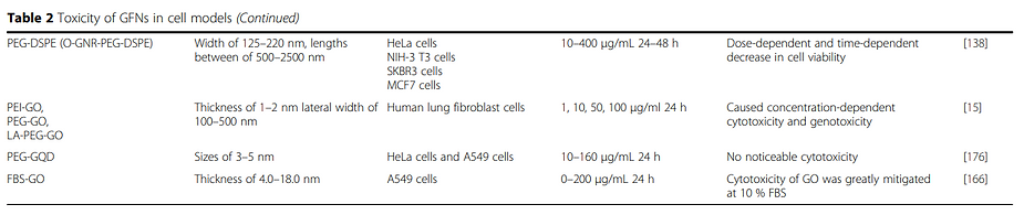 Toxicity of Graphene of Family of Nanomaterials in Cell Models