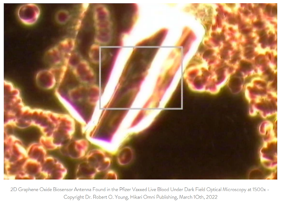 Graphene Ferric oxide crystals (Ferromagnetic Properties) and Trypansoma cruzi parasite eggs were observed in the live capillary blood from a VAXXinated male using Brightfield, pHase contrast microscopy and confirmed with UV absorbance and Fluorescence Spectroscopy, Scanning Electron Microscopy, Transmission Electron Microscopy, Energy Dispersive Spectroscopy, X-ray Diffractometer and Nuclear Magnetic Resonance instruments. – Copyright Hikari Omni Media – Robert O. Young MSc, DSc, PhD, Naturopathic Practitioner – 2021