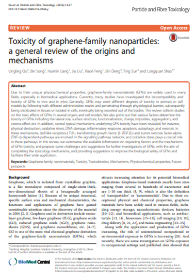 Several typical mechanisms underlying Graphene Oxide nano-material’s toxicity have been revealed in numerous studies including my own, for instance, physical destruction, oxidative stress, DNA damage, inflammatory response, apoptosis, autophagy, and necrosis. In these mechanisms, toll-like receptors, transforming growth factor-beta (TGF-β) and tumor necrosis factor-alpha (TNF-α) dependent-pathways are involved in the signaling pathway network, and oxidative stress plays a crucial role in these pathways.