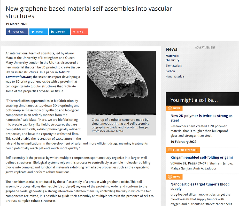 Graphene Oxide flakes self-organize, move towards each other, and build layers like an independent robot. That is why they are used in hydrogels for the slow release of medicine in a patch, a patch that can sense what the Graphene Oxide receivers are broadcasting about the chemical function of the liver, pancreas, or most any other diseased area.