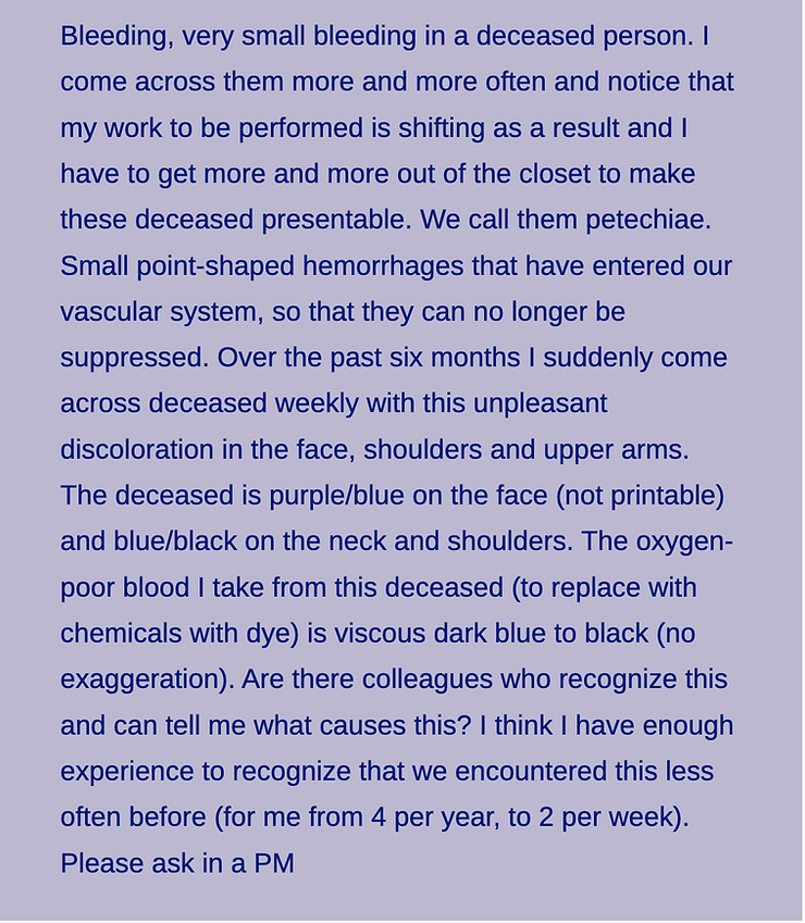 [2] Pictorials of the very small bleeds and skin discoloration in the deceased: