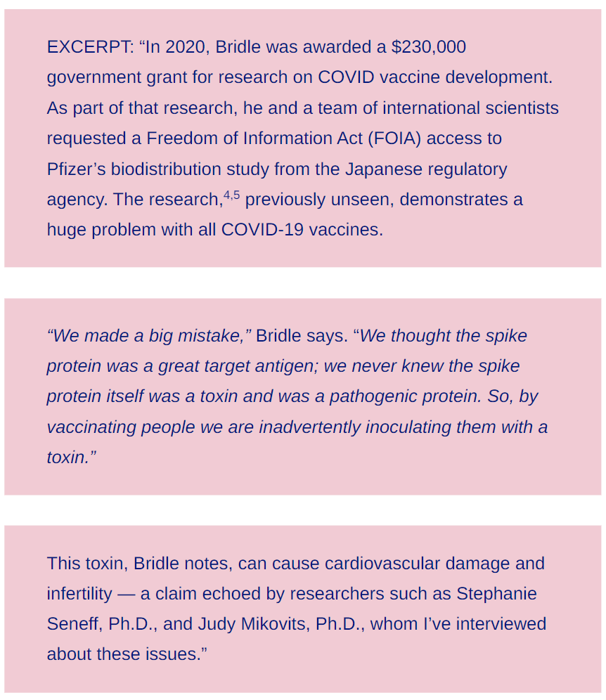 One of the main dangers he says is the data from the Pfizer biodistribution studies showing the spike protein/mRNA homing in or coagulating in the ovaries. Reproductive health is compromised in children, he reports. The FDA has not required needed toxicity studies, he reports. The one tiny study done in pregnant women, he reports, shows a high rate of spontaneous abortions. Menstrual cycles are being affected, he reports. Children whose bodies and brains are developing rapidly are in danger of the micro blood clots being caused by the vaccines, he reports. Not enough studies have been done overall but the data we have currently suggests high danger for pregnant women and children: