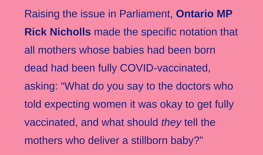 Ontario MP Rick Nicholls Raises Issue of Escalation in Stillbirths in Fully Vaccinated Mothers Across Canada in Parliament.