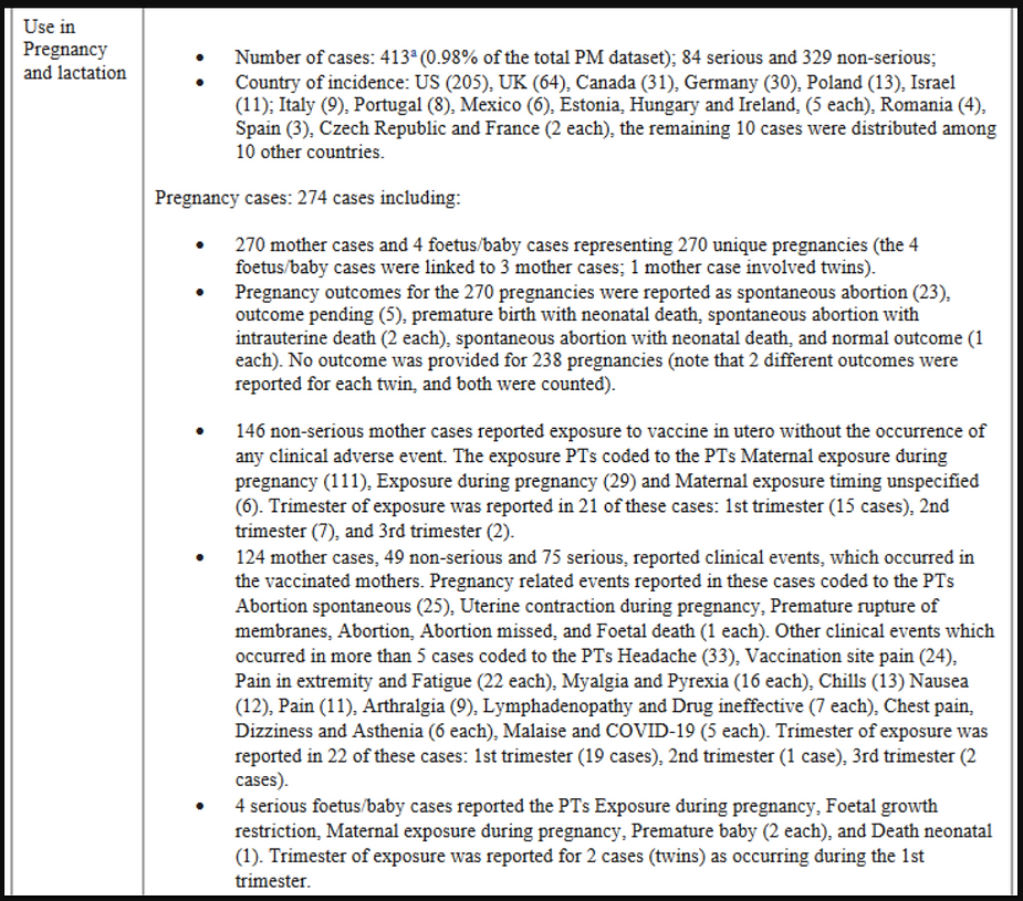 PFIZER, MODERNA, FDA, EMA AWARENESS OF HARM: Birth Defects and Ectopic Pregnancies