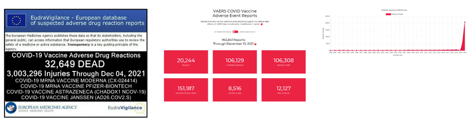 with over (Figures below show thousands dead from the vaccines, but it is widely accepted, succeeding the Harvard Pilgrims’ study that only 1% of vaccine-deaths are being reported to these databases. Thousands dead of course is bad enough but the estimated number dead is now in excess of 34 million with over 500 million injured!)