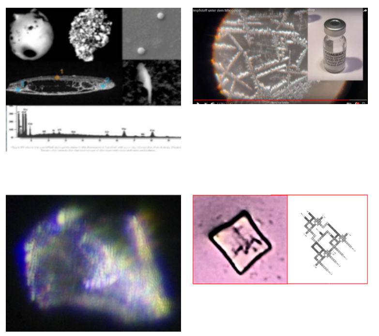 Pathologists from the Institute of Pathology in Reutlingen which Dr. Burkhardt used to head previously revealed similar findings as well as unusual elements in the blood of the vaccinated and in vaccines. Scientists and researchers have examined the vaccines under optical phase contrast and electron microscopes as well as energy spectroscopes and found high toxin content inclusive of cytotoxic Graphene Oxide.