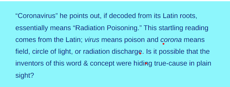 Especially helpful is Dr. Young’s explaining of the whole COVID and virus narrative which posits a material substance as virus, fabricates a hundred variants–all with Greek alphabet names–and fixates on a bioweapon and gain-of-function narrative to warrant virus-use as biowarfare and pandemic fare– a cover for chemical and electromagnetic warfare on humanity, which has been going on for a very long time now and props up the virus, cancer, disease and drug-and-vaccine industry which makes billions off public-health scares and subjugating the public.