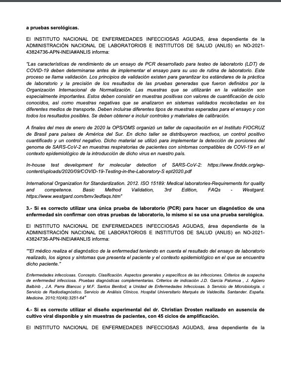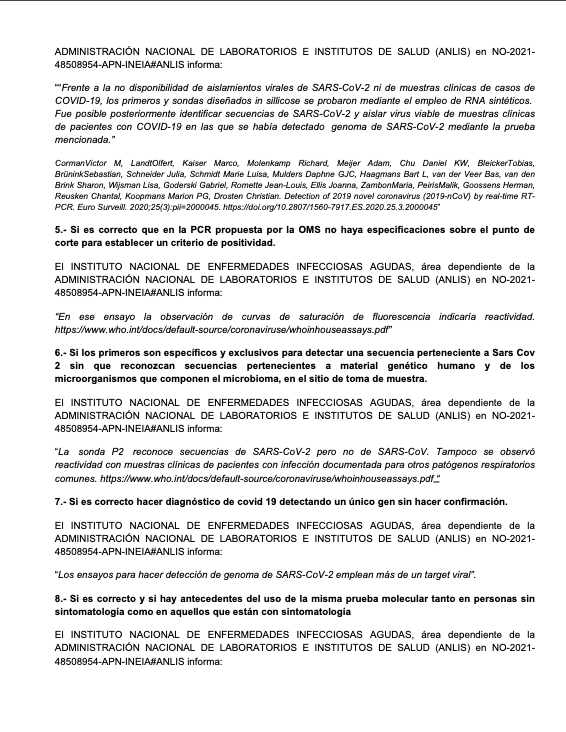 “Attached request to Argentine Ministry of Health, not specifically about direct isolation but about the use of PCR testing.