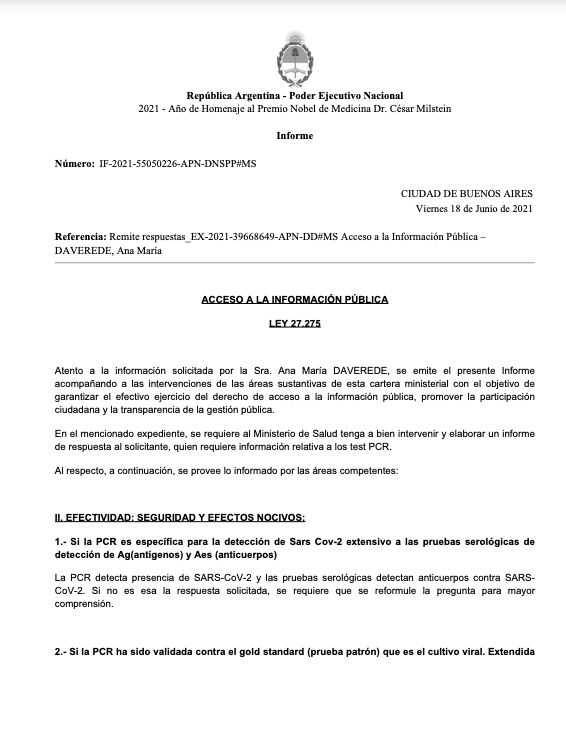 June 18, 2021: Argentine Ministry of Health FOI response obtained by Ana Maria Daverede. I personally cannot read this, but was told by the colleague who kindly forwarded it: