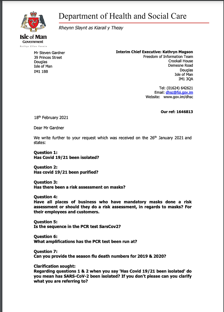 On Feb 18, 2021:the Isle of Man’s Department of Health and Social Care admitted in a FOI response to Mr. Steven Gardner that: