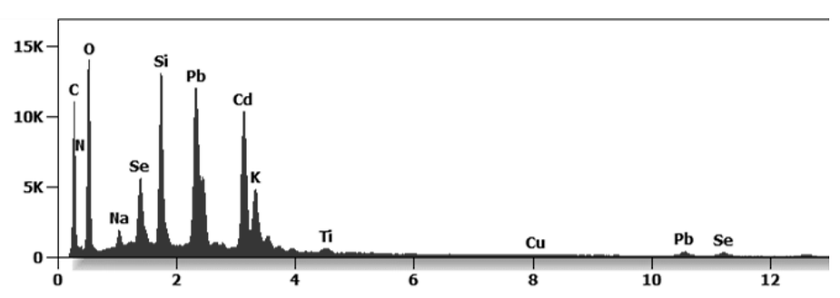 Figure 2 below reveals the cytotoxic, genotoxic and magnetic toxic spectrum of the Moderna “vaccine” nano particulates of reduced graphene oxide or graphene hydroxide, silicon, copper, titanium, selenium, potassium and cadmium, and lead identified under an ESEM microscope coupled with an EDS x-ray microprobe. (X axis =KeV, Y axis = Counts)