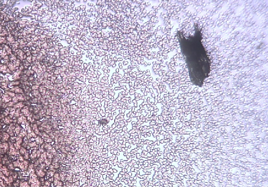 3. A large symplast of magnetic nano graphene oxide observed in the live unchanged and unstained capillary blood using pHase Contrast Microscopy of a VAXXinated male.