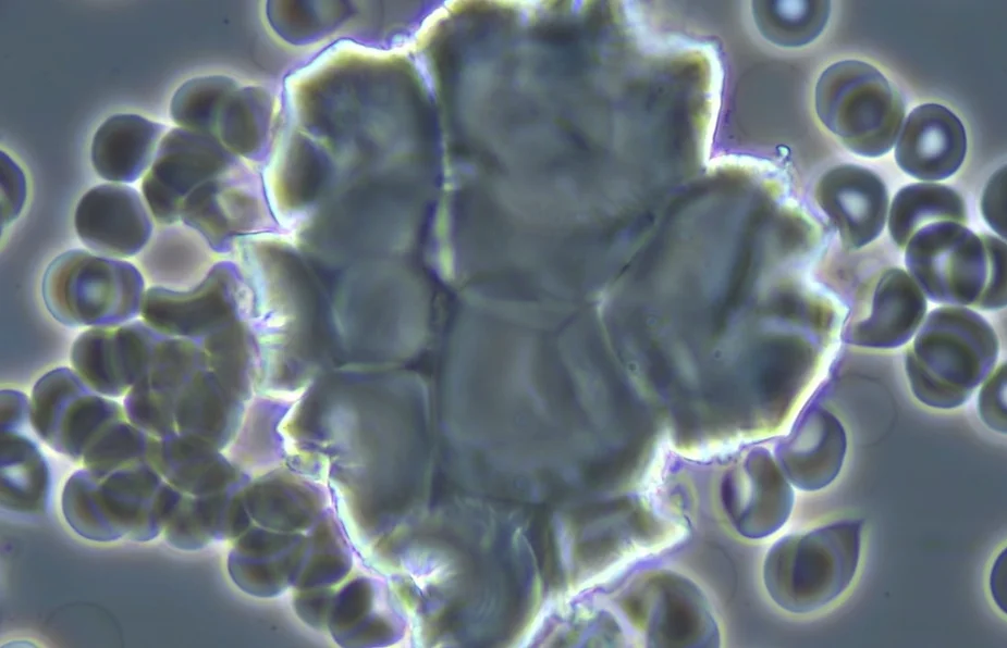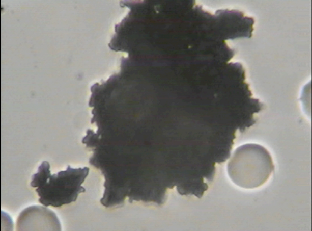 6. A large symplast of Nano Graphene Oxide observed in the live unchanged capillary blood under pHase contrast microscopy of a UNVAXXinated female. I call these symplasts of graphene, ” Graphene Atomic Bombs”