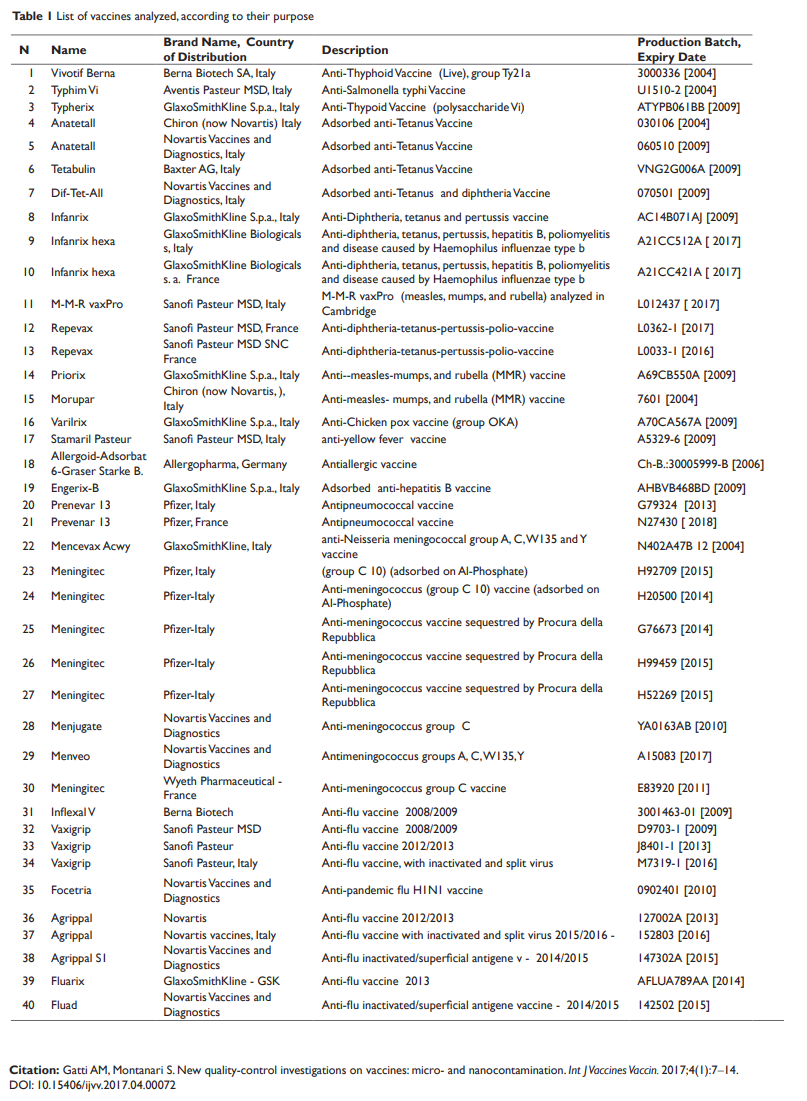 [54] Gatti AM, Montanari S. New quality-control investigations on vaccines: micro- and nanocontamination. Int J Vaccines Vaccin. 2017;4(1):7‒14. DOI: 10.15406/ijvv.2017.04.00072