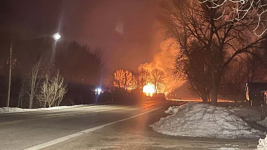 A blaze still burns after a train carrying highly flammable ethanol derailed in Minnesota.