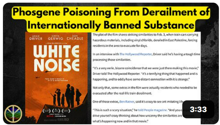 In addition to the eerie timing of the ‘MyID’ rollout, the movie White Noise released on Netflix over 18 months ago depicts an Ohio train derailment that was filmed in East Palestine. In the film, a college professor who teaches in a fictionalized Ohio town must leave his home with his wife after a train derails and harmful chemicals (phosgene) are released into the air.