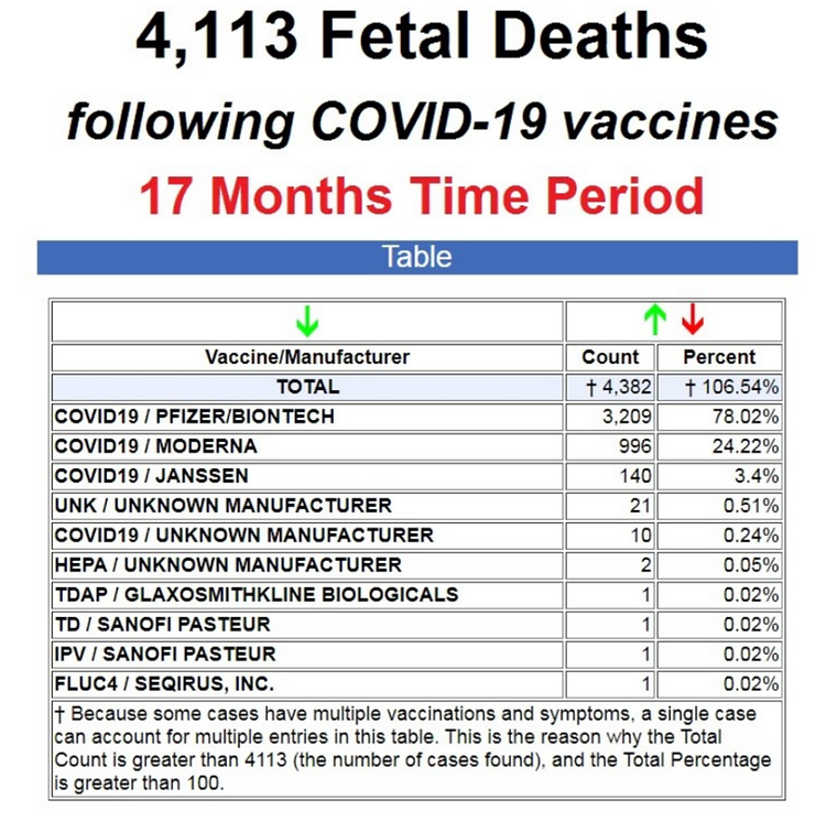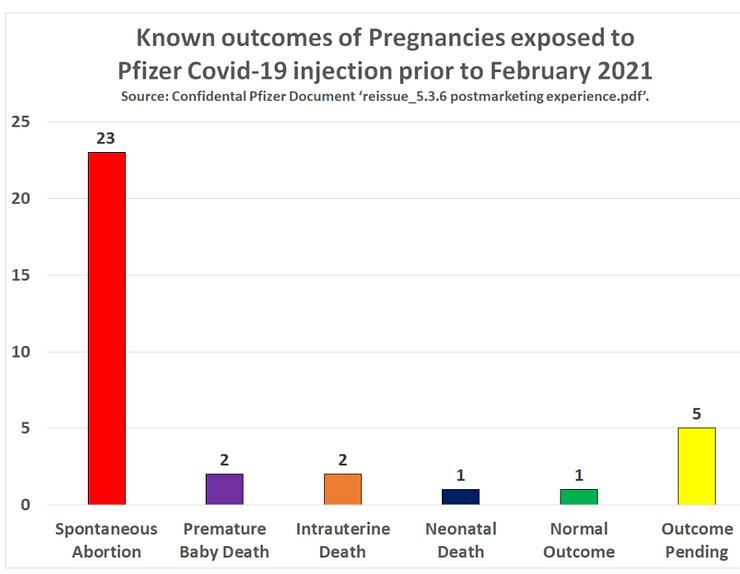 What this means is that almost every pregnant woman who takes Pfizer’s mRNA (messenger RNA) injections for the fake corona virus will lose her baby. Conversely, only a tiny fraction of fully jabbed women will successfully deliver to term.