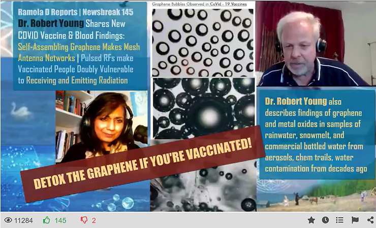 “Dr. Young’s research will prove to you that there is indeed “graphene oxide” and “parasites” in the COVID serum.”