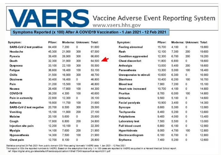 64,500 deaths due to the COVID injections in the UK were reported to VAERS.