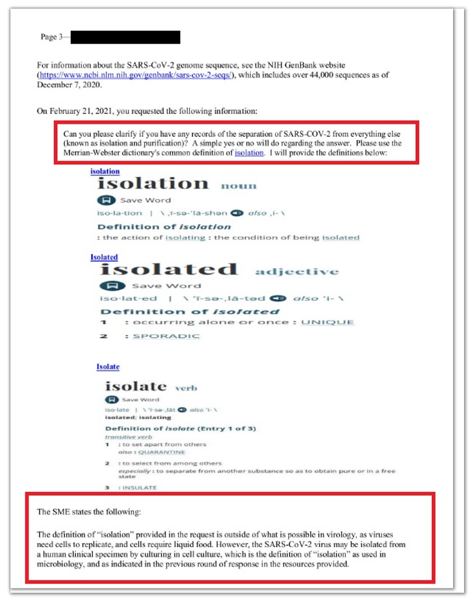 New York City Department of Health and Mental Hygiene suddenly denied a FOIL request from Louis Stephen that had included the following: “The information I am requesting is: 1) Proof of isolation or an isolate of the SARS-COV-2 virus“, with this explanation: