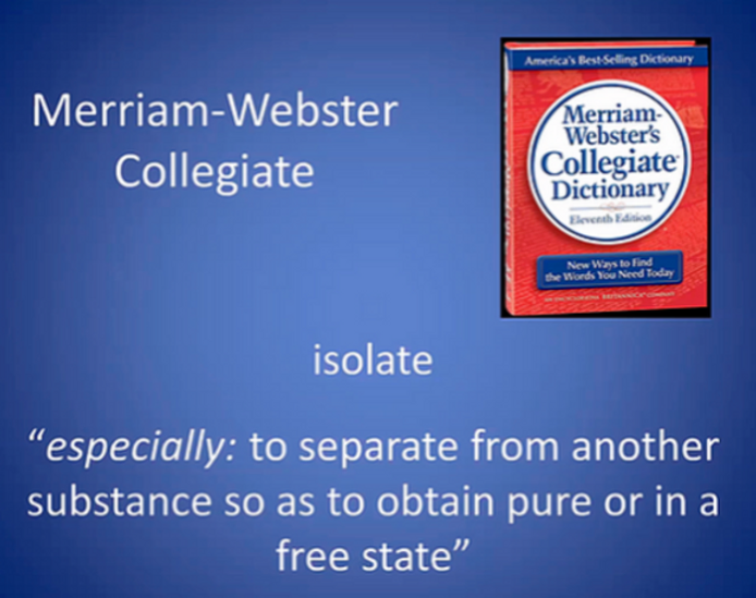 Clarification 2: Isolate means “to separate something from other things with which it is connected or mixed”–Cambridge Dictionary definition.