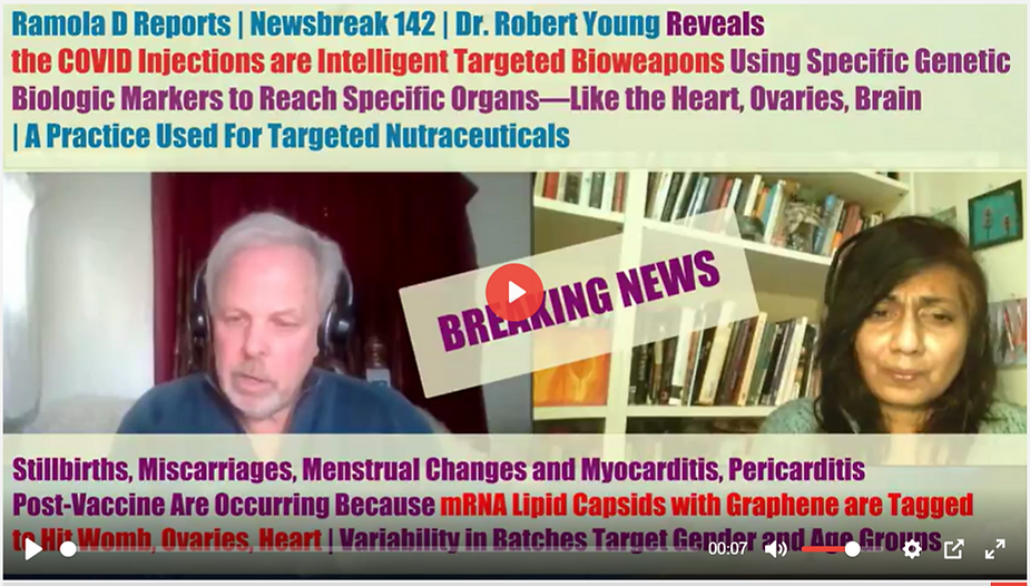 Informative conversation with Dr. Robert Young who shares new findings of self-assembling “graphene micro bubbles” in the Pfizer vaccine as well as evidence of the same kind of graphene bubbles in the blood of a Moderna-vaccinated individual.