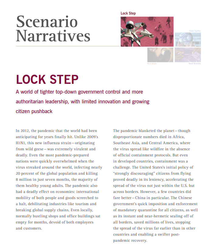 OPERATION LOCKSTEP, 1 OF 4 NARRATIVES IN THE Rockefeller Foundation Scenarios for the Future of Technology and International Development, Published May 2010