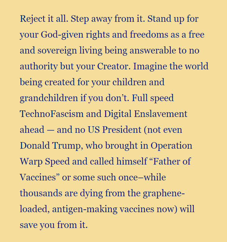 Apposite to all is the fact that various ancient predators and modern maniacs and monarchs keen on Empire and serfdom are running this entire WHO-UN-WEF-World Bank heist at Syringe-Point on a carefully-kept-powerless world by their paid goons in Big Tech, Big Media, Big Pharma, Big Slavery running Censorship and Fact-Burials (especially regarding the Vaccine Deaths and Damages) all over the Internet and physical world.